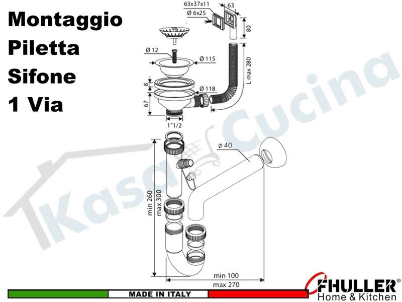 | Accessori di Serie a Corredo | Pilette, Sifone e Ganci Fissaggio |