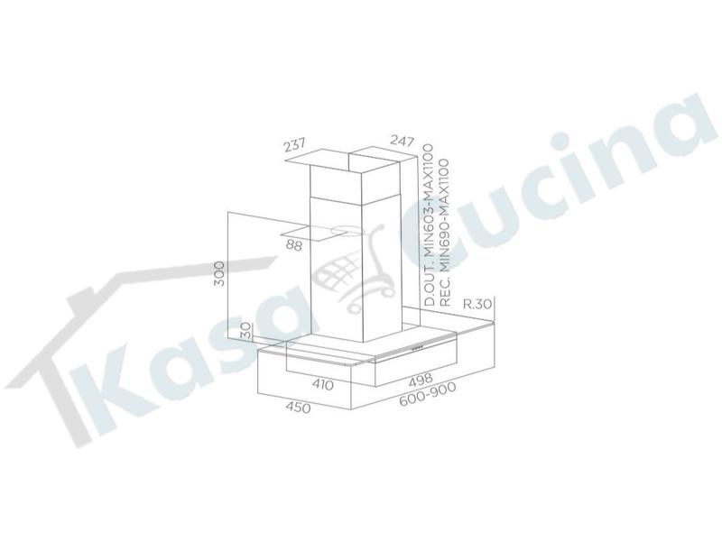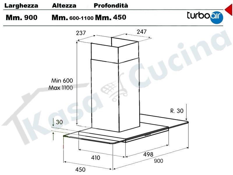 Cappa Turboair Sempione IX/90 68515381 Cm.90 Inox Incasso cucina moderna Comando Push Button 3 velocità Motore 400 m³/h