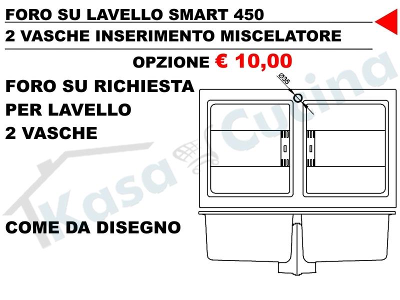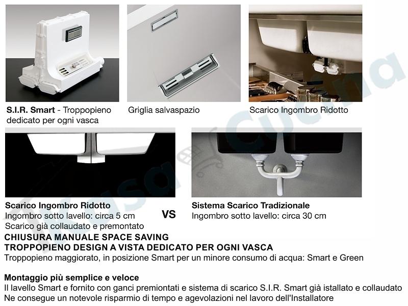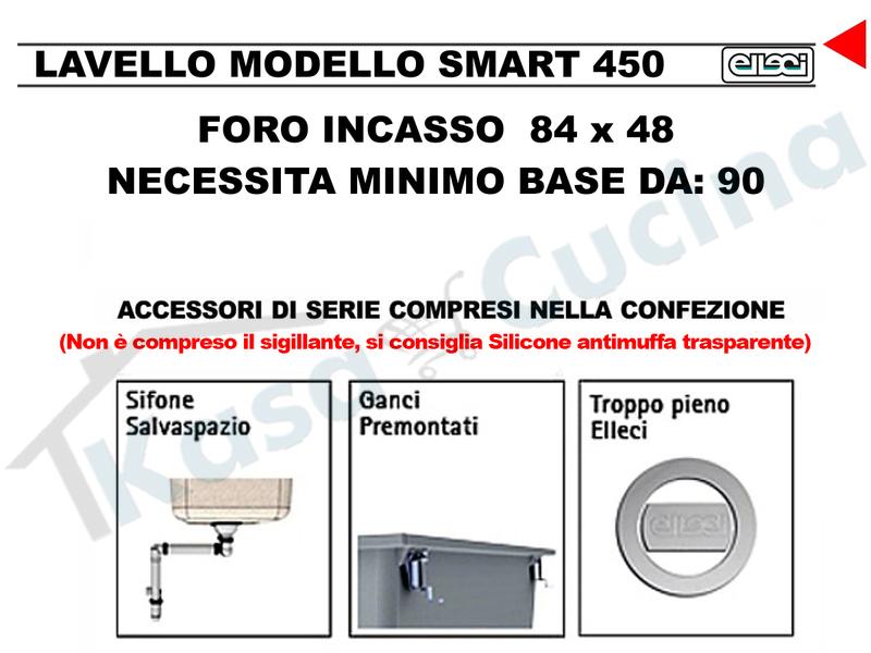 Lavello compreso di: Piletta, Sifone attacco lavastoviglie salva spazio, Agganci di Fissaggio.