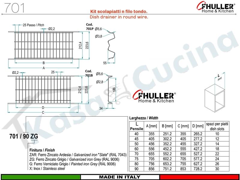 | Modello | 701 Griglia Kit Piatti e Bicchieri + 4 Staffe Art 901 + Cartone |