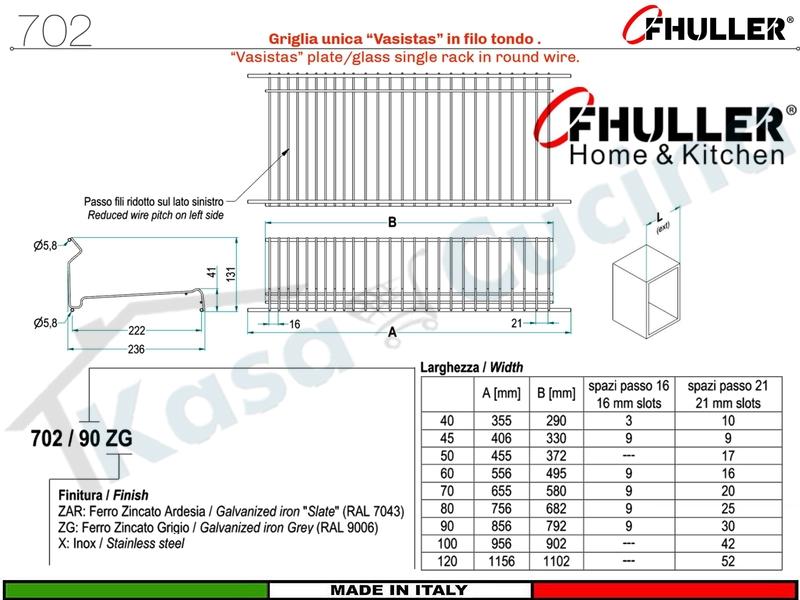 | Modello | 702 Griglia Unica Piatti Bicchieri VASISTAS |
