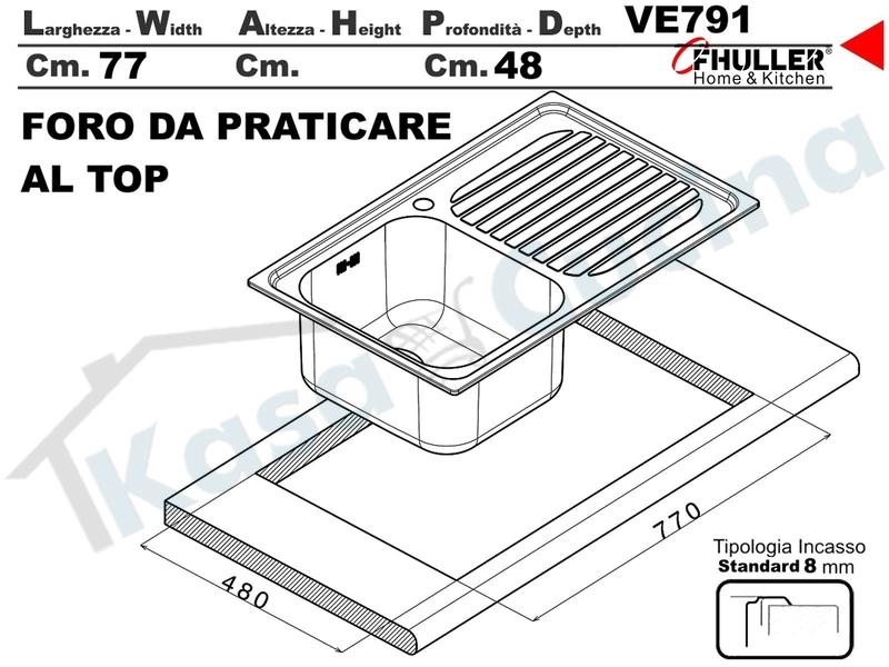 | Foro Rubinetto Ø cm 3,5 | Preforato da Ø cm.3,5 (Servizio di Foratura a Pagamento) |