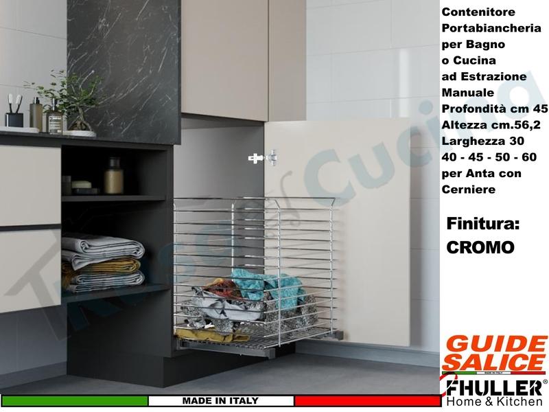Composizione1 Carello Cassetto estraibile Portabiancheria Serie ZENITH Cromo con guide SALICE Futura Estazione parziale ed Ottimizzata con Sistema Soft-Closing (AMMORTIZZATA)