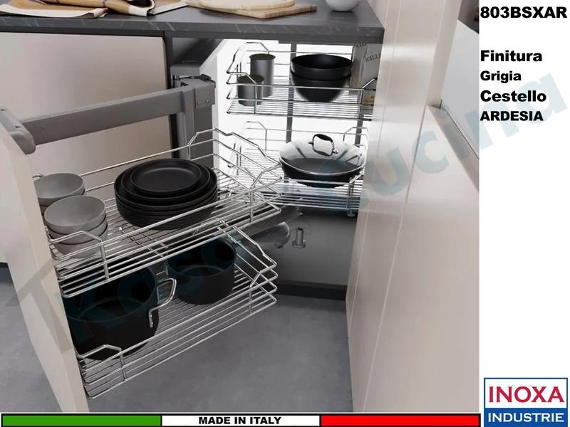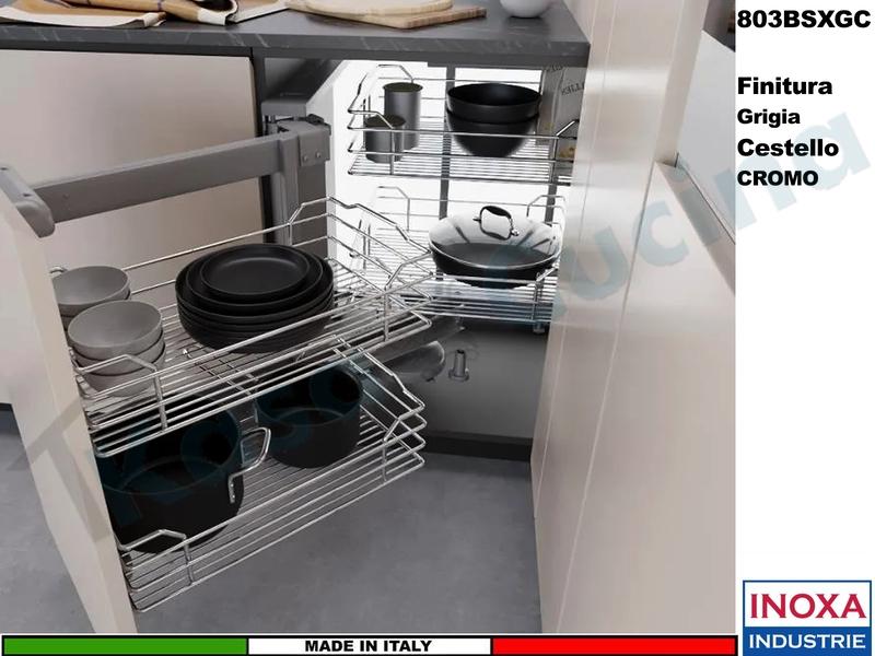 I sistemi Angolari ti permettono di progettare la cucina dei tuoi sogni, dentro e fuori. Per sfruttare al meglio gli angoli inutilizzati, scegli i meccanismi con Cesti Estraibili, Cestelli Girevoli a mezzaluna, Cesti a 3/4 oppure rotondi (4/4) Ripiani Girevoli ad estrazione totale. Crea una soluzione, adatta a tenere in ordine la tua spesa, ma anche le pentole dalle Piccole alle più grandi.